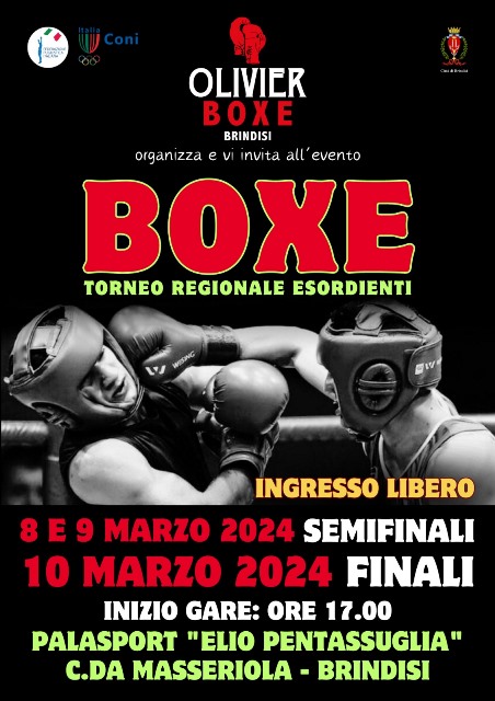 Triplice successo per ASD Boxe Potenza del maestro Giuseppe Gruosso che vede ben 3 atleti premiati al “Torneo regionale Esordienti” della Federazione Pugilistica Italiana, Comitato di Puglia e Basilicata e ben organizzato dalla Olivier Boxe. Ben tre medaglie d’oro che gli atleti lucani hanno conquistato nella tre giorni di Brindisi, infatti il Palasport “Elio Pentassuglia” della città pugliese ha ospitato dall’8 al 10 marzo questo importante torneo, che ha messo in evidenza i giovani talenti della Noble Art delle Puglie e della Basilicata. Per quanto riguarda gli atleti del maestro Giuseppe Gruosso abbiamo il primo posto nella Categoria Youth kg 63,5 con Carmine Pagano; questo il ruolino di marcia giorno 9 semifinali Pagano Carmine Boxe Potenza vince Monteleone Cristian della Vivere Solidale Taranto e Finale giorno 10 Pagano Carmine vince su Mocerino Nicola Pugilistica Portoghese Bari; poi nella categoria Elite kg 63,5 oro anche per Andrea Marino che nella semifinale del giorno 8 ha battuto Russano Pierpaolo “Amici del pugilato” di Lecce e nella finale, disputata domenica 10, ha battuto Mirassi Samuele della storica “Pugilistica Taralli” di Foggia. Mentre domenica 10 doveva disputare la finale anche l’atleta Colucci Alessandro Categoria Scool – boy kg 36/40 ma ha vinto per ritiro dell’avversario per infortunio. Ricordiamo che Colucci per le sue qualità è attenzionato anche dalla Federazione Pugilistica Italiana ed è stato invitato ad