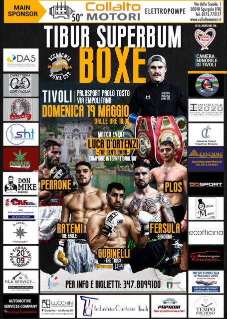 Al Palasport Paolo Tosto interessante “mista” organizzata dall’ Acc. Pugilistica Roma Est con inizio alle 18 per i dilettanti e per i professionisti a partire dalle ore 20. Simone Autorino ha fatto le cose in grande con un programma che vedrà tra i professionisti alcuni tra i migliori pugili del Lazio. Il ruolo di match clou spetta di diritto a Luca “Gentleman” D’Ortenzi, un cruiser più volte protagonista a livello internazionale. D’Ortenzi è un pugile conteso che garantisce uno spettacolo gradito agli spettatori per la sua boxe dove non difetta certo la tecnica. Della aerata farà parte anche Matteo Gubinelli, un supermedio dotato di discreta potenza in procinto di passare tra i prima serie e pronto per una sfida tricolore. Con grande curiosità è atteso il rientro dopo quasi tre anni di Cristiano Perrone, un superwelter che ha due martelli al posto delle mani. Molto attesa anche la prova del welter Alessandro Fersula, un pugile richiesto anche all’estero e una sicura garanzia di spettacolo. Nella serata ci saranno anche due esordienti come Lorenzo Ratemi e Cristian Plos, considerati già all’esordio più che promettenti.