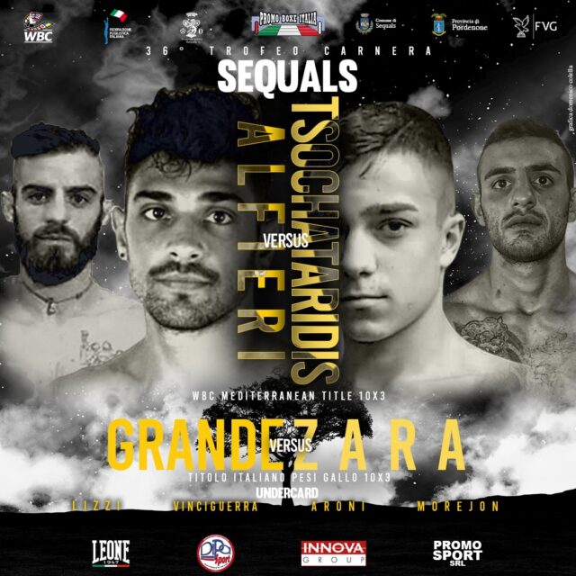 Il 16 luglio a Sequals si svolgerà la 36ma edizione del Trofeo organizzato anche quest’anno dalla Promo Boxe Italia di Maio Loreni. Il programma in via di definizione appare ambizioso. Si disputerà il Titolo WBC del Mediterraneo tra i welter Luigi Alfieri (+9,-3) e il greco Panagiotis Tsochataridis (+11, -11). Nella stessa giornata Claudio Grande (+10, -2), fresco campione italiano dei gallo, difenderà il titolo dall’assalto che gli porterà Cristian Zara (+9, -2), sconfitto recentemente da Vincenzo Picardi dopo un match entusiasmante per l’Unione Europea. La manifestazione vedrà tra i protagonisti anche giovani speranze come Roberto Lizzi, Andrea Aroni e Mattia Vinciguerra.