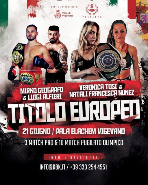 A l PalaElachem di Vigevano Veronica Tosi supera nettamente la spagnola Natalia Francesca e conquista il Titolo Europeo dei gallo che era vacante. Nella stessa riunione, organizzata dal duo Rolando Frascaro-Giovanni De Carolis, si è disputato una sfida tutta italiana per l’Europeo Silver dei welter tra Mirko Geografo e Luigi Alfieri, terminata in parità e rimandata ad maiora. I due match titolati non hanno certo deluso le aspettative. Veronica Tosi, 36 anni, ha strapazzato la coraggiosa avversaria in virtù di una boxe aggressiva che non ha lasciato respiro all’avversaria. Vittoria netta che non ammette discussioni. Piuttosto c’è ancora da rilevare dove può arrivare la pugile di Vigevano, che sembra aver intrapreso a 36 anni una nuova carriera con la conquista del Titolo Italiano, ottenuto contro Annalisa Brozzi, e adesso quello europeo. “The Butcher”, come viene chiamata dai suoi tifosi, a ben ragione non si pone limiti.