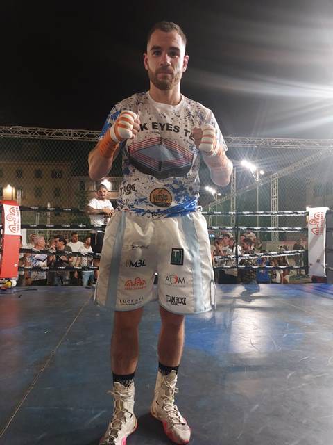 Professionisti pesi piuma: Mattia Occhinero ( kg 56,5, colonia Magnesi ) batte El Ghouiyal Aziz (kg 56,4 Malta) punti 6 riprese.