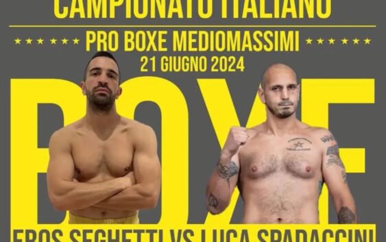 Eros Seghetti, 30 anni, corona il sogno del Titolo Italiano nella categoria dei mediomassimi nella sua Ascoli Piceno battendo prima del limite l’abruzzese Luca Spadaccini fermato al IV round. Il match organizzato da Rosanna Conti Cavini si è svolto nella centralissima Piazza del Popolo. Vittoria che apre le porte internazionali. Il successo del neocampione premia anche la bravura del maestro Roberto Ruffini che un mese fa si trovava all’angolo di Luca Di Loreto nuovo campione dei supermedi. La boxe marchigiana da tempo sembra tornata ai vecchi splendori, tenendo anche conto di un bel numero di giovani che si affacciano alla ribalta.