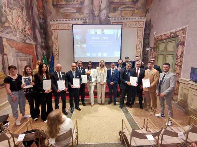 Roma, 12 giugno 2024 – La Sala Zuccari di Palazzo Giustiniani, Senato della Repubblica, al completo per il Convegno conclusivo del progetto “Ethical Sport”, la prima Certificazione Antibullismo (P.d.R. 42-2018 UNI) per centri di aggregazione sportivi e best practice che rappresenta un unicum in tutta Europa. Finanziato completamente dalla Presidenza del Consiglio dei Ministri – Dipartimento Politiche Familiari, e promosso dall’Associazione Konsumer Italia, in partnership con la Federazione Pugilistica Italiana e con l’Osservatorio Nazionale Bullismo e Disagio Giovanile ed eseguito con l’Ente di Certificazione Quaser, il progetto ha visto un pool di esperti somministrare formazione in dieci società sportive del Comitato Regionale Lazio FPI a maestri, tecnici sportivi, allievi e genitori degli stessi, attraverso un percorso formativo e di messa in sicurezza delle strutture, articolato in diciotto mesi.