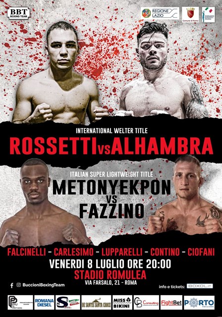 Nel frattempo, l’8 luglio, la Buccioni Boxing Team, organizza a Roma grande boxe, riportando la capitale all’attenzione nazionale. Doppio clou con due titoli in palio: l’Internazionale Latino IBF welter e la cintura tricolore dei superleggeri. La prima vede sul ring il beniamino di casa Pietro Rossetti (14-1) sfidare lo spagnolo Aaron Alhambra (11-1), mentre l’altro confronto riguarda la prima difesa del campione italiano Charlemagne Metonyekpon (10), titolo conquistato a spese di Arblin Kaba (13-3-1) il 26 marzo ad Osimo nell’anconetano, dopo una battaglia molto equilibrata. Il campione ritrova il romano, Jacopo Fazzino (6-5) col quale si era confrontato il 19 dicembre 2020 ad Ancona, sconfitto di misura sui sei round. Quando a Fazzino è stata proposta l’opportunità tricolore, la risposta non poteva che essere positiva, concretizzandosi l’opportunità di battersi per il titolo italiano, godendo del tifo dei suoi estimatori. Il record in apparenza modesto è poco indicativo del suo reale valore. Da non sottovalutare le vittorie sull’abruzzese Mattia Di Tonto e in particolare sul campano Donato Cosenza, campione italiano e titolare agli europei dilettanti. Un test che al di fuori del risultato assicura spettacolo considerato che entrambi sono votati all’attacco. La riunione ubicata allo Stadio della Romulea, in via Farsalo, verrà completata da quattro match di indubbio interesse. Nei mediomassimi ci sarà l’attesissima sfida tra l’inossidabile ex campione UE Serhij Demchenko (23-8-1) ucraino residente a Roma da anni e il pescarese non più verde Gian Marco Ciofani (1-4-1), 38 anni, reduce dal successo sul georgiano Giorgi Kandelaki (12-48-3), dignitoso collaudatore, deciso a battere il coetaneo. In attesa di conoscere gli avversari, i tre romani impegnati rappresentano un capitale importante per il futuro del nostro boxing. Il supermedio Yuri Lupparelli (10) aspetta l’opportunità tricolore, mentre il massimo Antonio Carlesimo (2), spesso sul podio agli assoluti dilettanti, sta facendosi largo nei pro, come dimostrano i due KO inflitti agli avversari da professionista, deciso a ripetersi al terzo esame. Importante il rientro del superwelter Damiano Falcinelli (14-1), pro dal 2014, ex campione italiano, deciso a cancellare la delusione della prima sconfitta in carriera, rimediata il 28 maggio 2021 a Charlottenburg in Germania, ko contro Hard Matevosyan. Da allora non ha più combattuto. Dopo oltre un anno risale sul ring, per riprendere il cammino in modo positivo, più che fattibile, viste la qualità del romano. Biglietti in vendita su www.boxol.it Prezzi: 30 euro a bordo ring, 20 euro in tribuna.