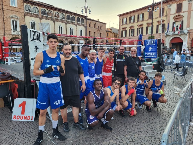 Una trasferta positiva per i tarantini della Quero-Chiloiro quella che si è svolta a Forlì il 16 luglio, nella 3^edizione di “Boxe sotto le Stelle” organizzata dalla storica Edera boxe Forlì, guidati dall’ex campione italiano supermassimi Nino Fiumana e dall’ex campionessa mondiale mosca e supermosca Simona Galassi. Un appuntamento estivo con la società emiliana che la Quero-Chiloiro ha rinnovato per il secondo anno consecutivo, portando la squadra di dieci pugili pugliesi, accompagnata dai tecnici Cosimo Quero, Cataldo Rapetti e Antonio Versace, che ha compiuto delle soddisfacenti imprese fuori casa. Per la Quero-Chiloiro il risultato è stato di due vittorie e un pari: le prime due a opera dell’élite 60 kg Mohammed El Gaaga su Ciro Milo e dell’under 17 63 kg Riccardo Iacca contro Cesare Biserna, mentre ha pareggiato l’under 17 60 kg Mattia Scarano con Andrea Paglialunga; anche gli altri pugili provenienti dalla Pegasus gym Matera, dalla Authentic gym Fasano e dall’Accademia pugilistica Portoghese Bari hanno dato lustro alla boxe pugliese con delle belle prestazioni.