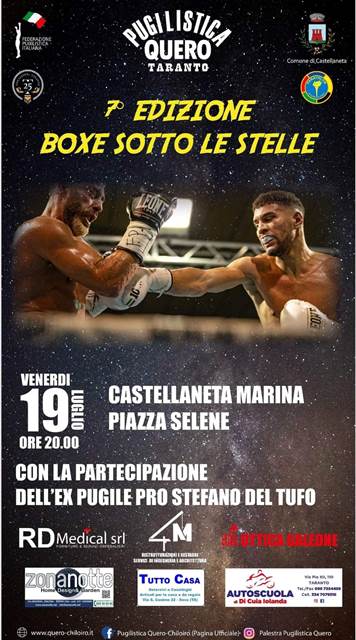 Giovanni Rossetti, origini cubane, e grande promessa dei medi, allenato dal maestro Quero, a Marina di Castellaneta ha dominato in lungo e in largo l’ungherese Gabor Gorbics, che deve alla sua grande esperienza aver sentito il gong della VI ripresa. Rossetti dopo una brillanta carriera dilettantistica confermava le sue qualità conquistando il titolo italiano dei medi battendo Carlo De Novellis. Titolo che perdeva per ko al I round contro il triestino Chiancone. Successivamente veniva superato dopo una bella prova da Samuel Nmomah. Adesso il “pugliese-cubano” è intenzionato a riprendere quota grazie ai suoi mezzi non comuni.