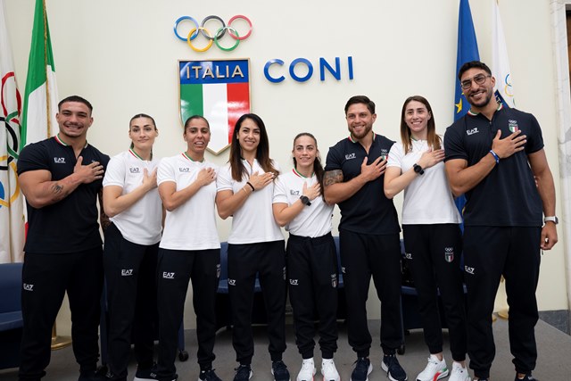 Roma, 9 luglio – “Noi siamo Italia Boxing Team. Noi siamo cuore”. Questo è il claim della Squadra Azzurra di Pugilato che, dal 27 luglio al 10 agosto, prenderà parte ai Giochi Olimpici di Parigi 2024. Le presentazioni ufficiali si sono svolte oggi nel suggestivo Salone d’Onore del CONI con la partecipazione del padrone di casa, il Presidente del CONI Giovanni Malagò, del Presidente FPI Flavio D’Ambrosi, del Vice Presidente Vicario del CONI Silvia Salis, del Capo del Dipartimento per lo Sport della Presidenza del Consiglio dei Ministri Flavio Siniscalchi e dell’’Assessore allo Sport ai Grandi Eventi, Sport, Turismo e Moda di Roma Capitale Alessandro Onorato.