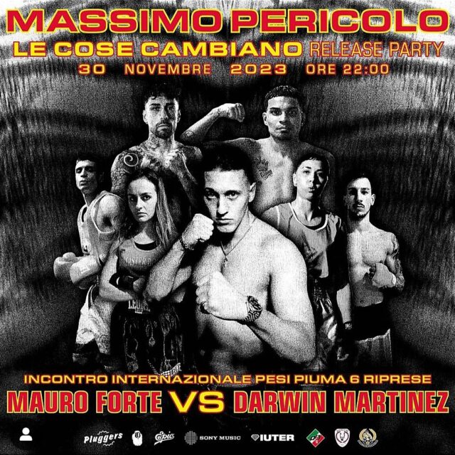 Mauro “The Strong” Forte torna a combattere in un evento crossover a Milano tra musica e pugilato: disputerà sei riprese contro il nicaraguense Darwin Martinez nel corso del release party del nuovo album di Massimo Pericolo. Si può seguire il match in diretta streaming sul canale YouTube di Massimo Pericolo.